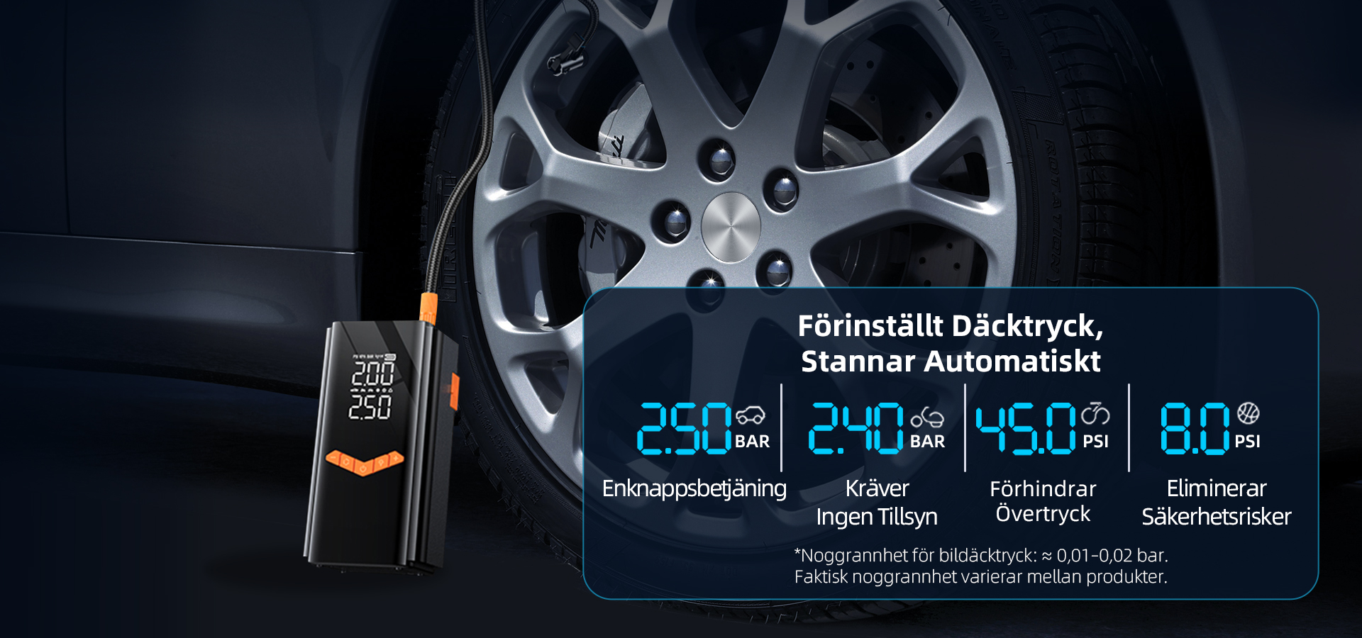 • Stängs av automatiskt vid förinställt tryck