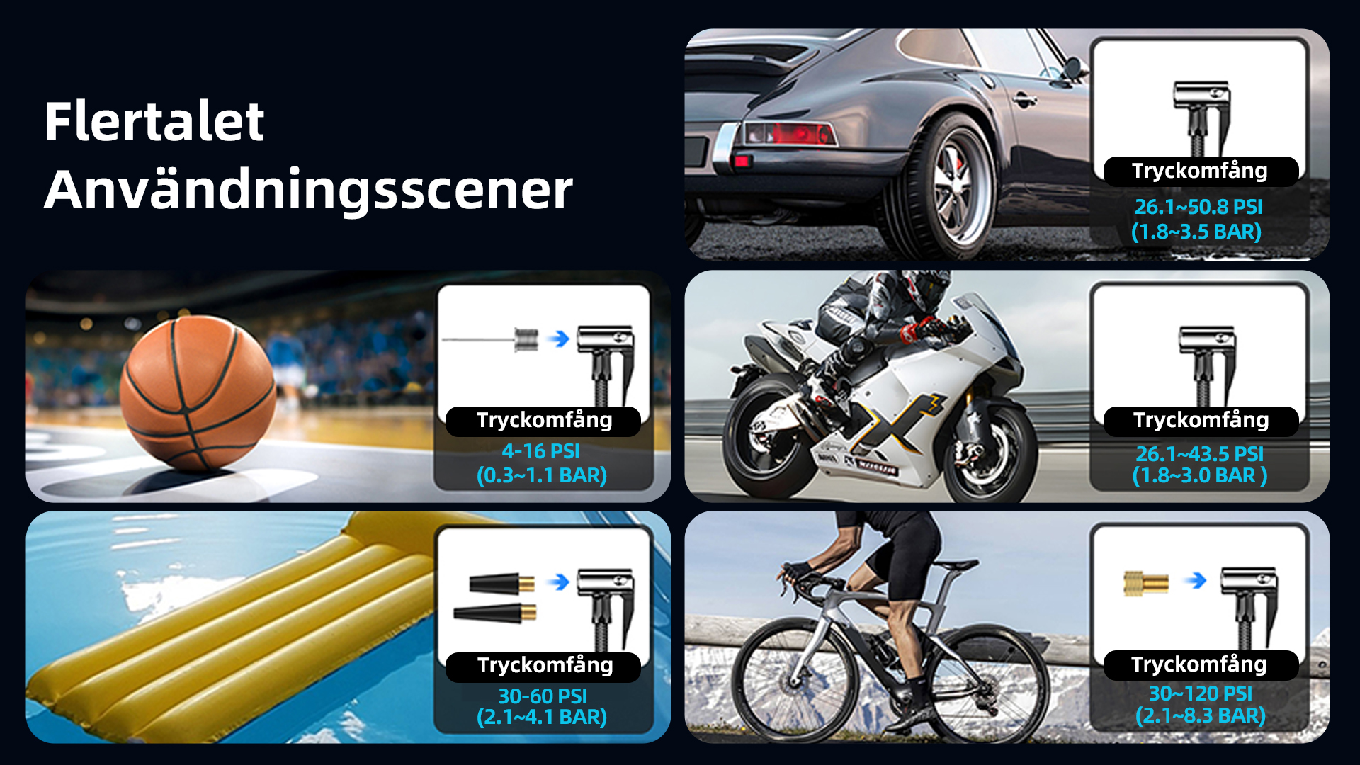 Anslut luftslangen till däckventilen med lämplig munstycksadapter
