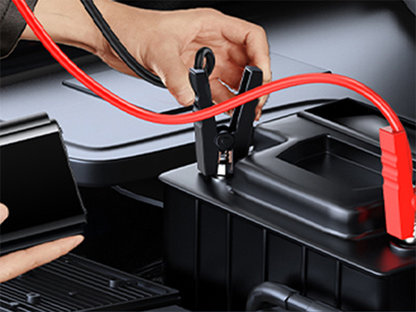Fäst röd klammer på batteriets (+) terminal